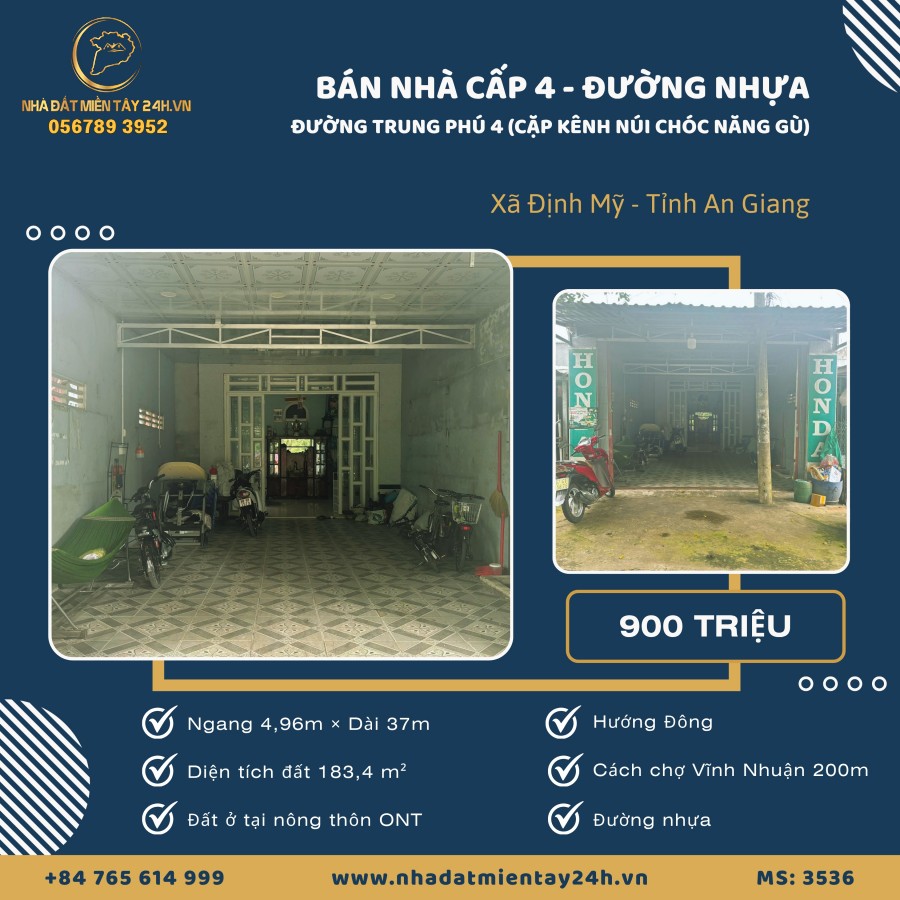 🏠 BÁN NHÀ CẤP 4 – MẶT TIỀN ĐƯỜNG NHỰA – XÃ ĐỊNH MỸ, AN GIANG - CÁCH CHỢ VĨNH NHUẬN 200M (MS: 3536) 🏠
