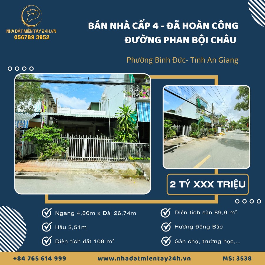 🏡 BÁN NHÀ CẤP 4 - ĐÃ HOÀN CÔNG | MẶT TIỀN PHAN BỘI CHÂU, PHƯỜNG BÌNH ĐỨC, AN GIANG (MS: 3538) 🏡