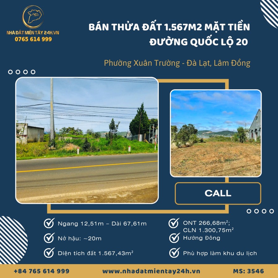 🌟 BÁN THỬA ĐẤT MẶT TIỀN QUỐC LỘ 20, PHƯỜNG XUÂN TRƯỜNG - ĐÀ LẠT, LÂM ĐỒNG (MS: 3546) 🌟