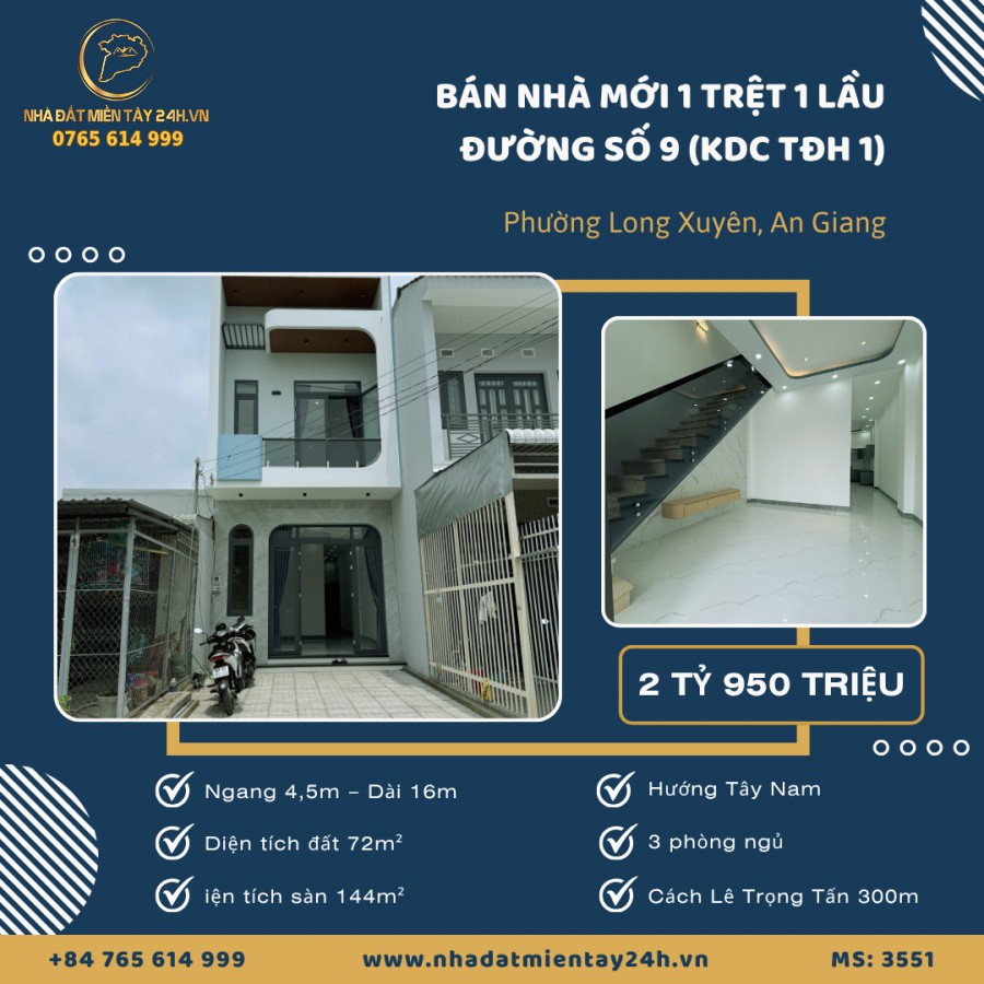 🏡 BÁN NHÀ 1 TRỆT 1 LẦU MỚI HOÀN THIỆN – 3 PHÒNG NGỦ, TẠI KDC TÂY ĐẠI HỌC GĐ1 (MS: 3551) 🏡