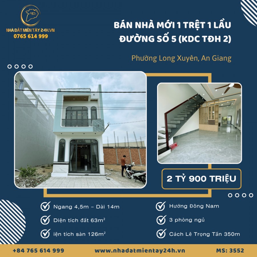 🏡 BÁN NHÀ 1 TRỆT 1 LẦU MỚI HOÀN THIỆN – ĐƯỜNG SỐ 5, TÂY ĐẠI HỌC GĐ2 (MS: 3552) 🏡
