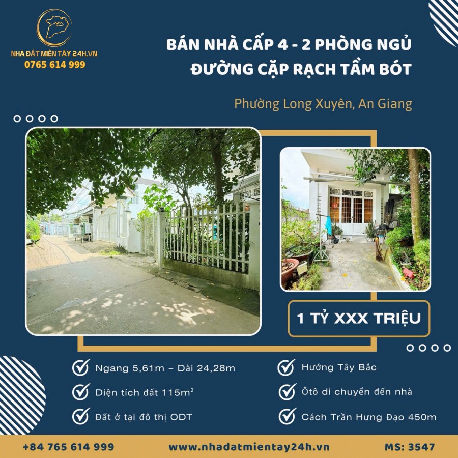 🌟 BÁN NHÀ CẤP 4 – 2 PHÒNG NGỦ – MẶT TIỀN ĐƯỜNG CẶP RẠCH TẦM BÓT, PHƯỜNG LONG XUYÊN (MS: 3547) 🌟