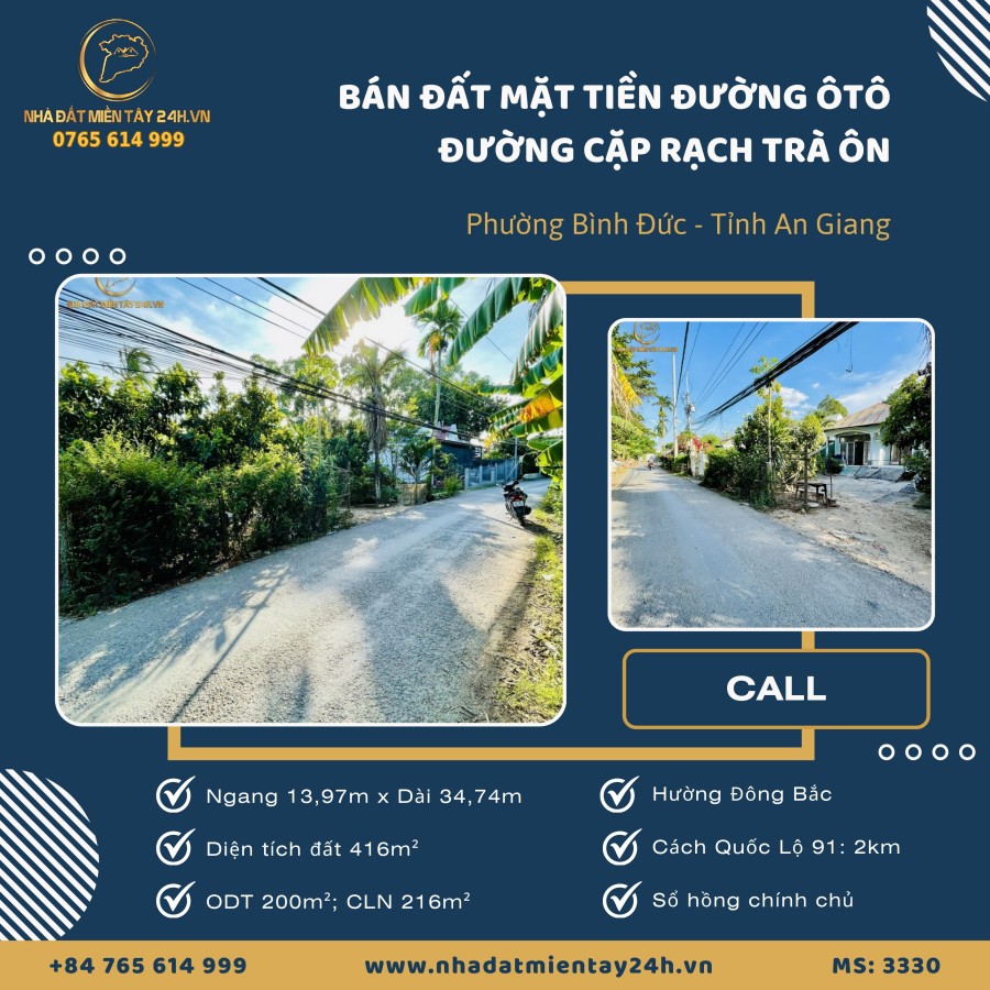 🌟 BÁN 416M2 ĐẤT MẶT TIỀN ĐƯỜNG Ô TÔ TẠI PHƯỜNG BÌNH ĐỨC, AN GIANG (MS: 3330) 🌟