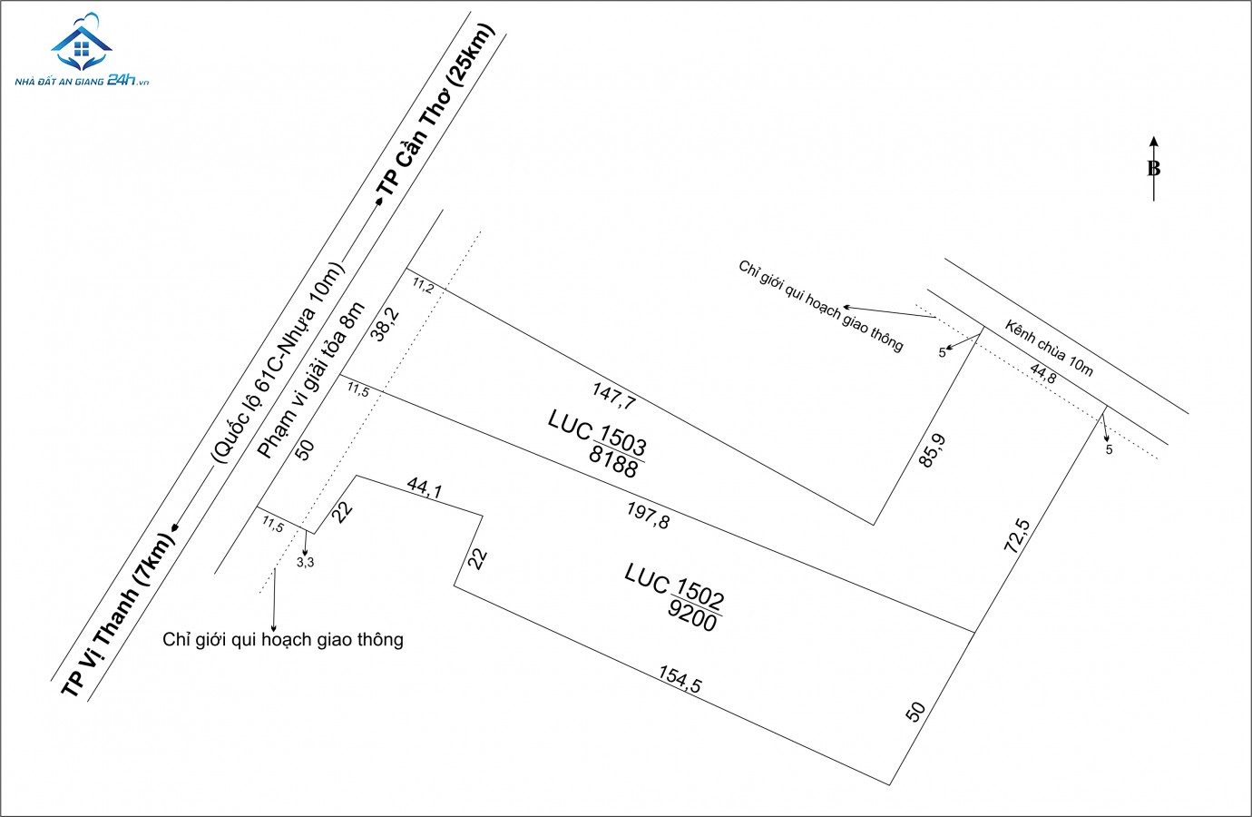 • Mặt trước hướng Tây Bắc giáp Quốc Lộ 61C – Kinh doanh sầm uất.