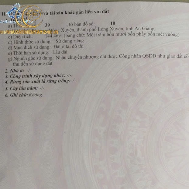 Mã số tin: 3549 Vị trí: An Giang Giá: 4 Tỷ XXX Triệu/ Tổng diện tích- 103