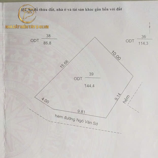 - Mục đích sử dụng: ODT - Đất ở tại đô thị