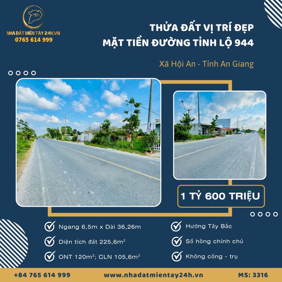 🚨 BÁN ĐẤT NỀN MẶT TIỀN TỈNH LỘ 944, XÃ HỘI AN, AN GIANG (MS: 3316) 🚨