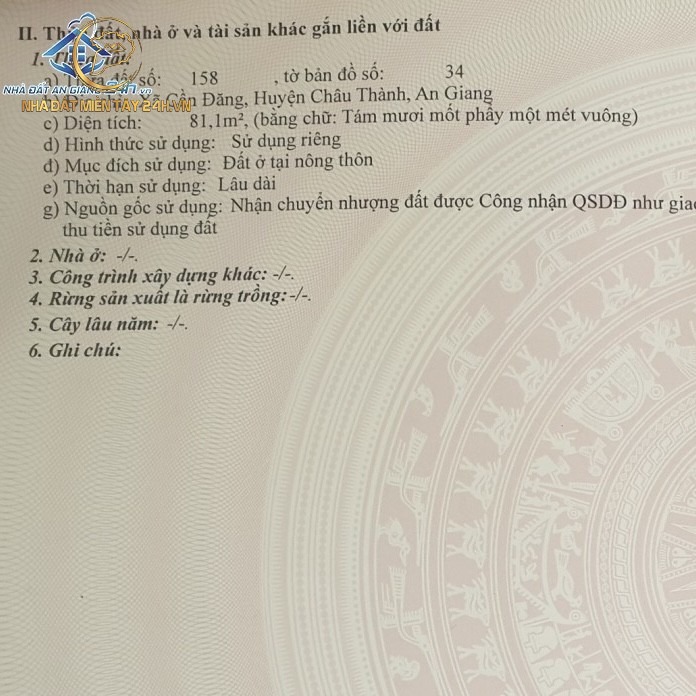 Mã số tin: 3549 Vị trí: An Giang Giá: 4 Tỷ XXX Triệu/ Tổng diện tích- 103