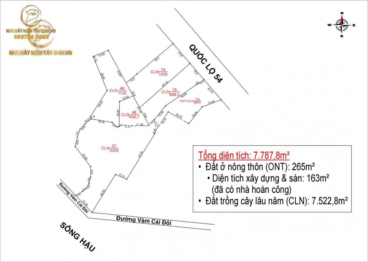 - Diện tích đất: 7.787,8m² (ONT 265m²; CLN 7.522,8m²) m2