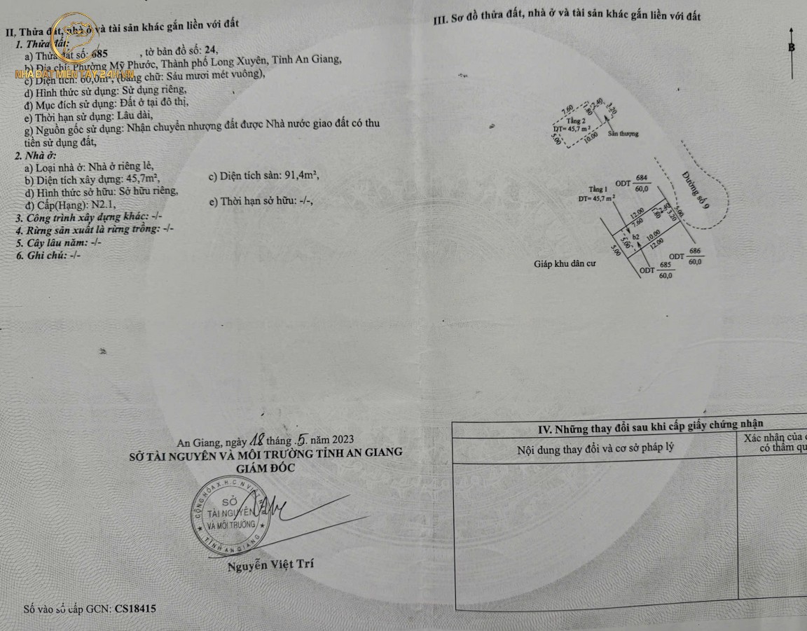 Mã số tin: 3550 Vị trí: An Giang Giá: 4 Tỷ XXX Triệu/ Tổng diện tích- 121