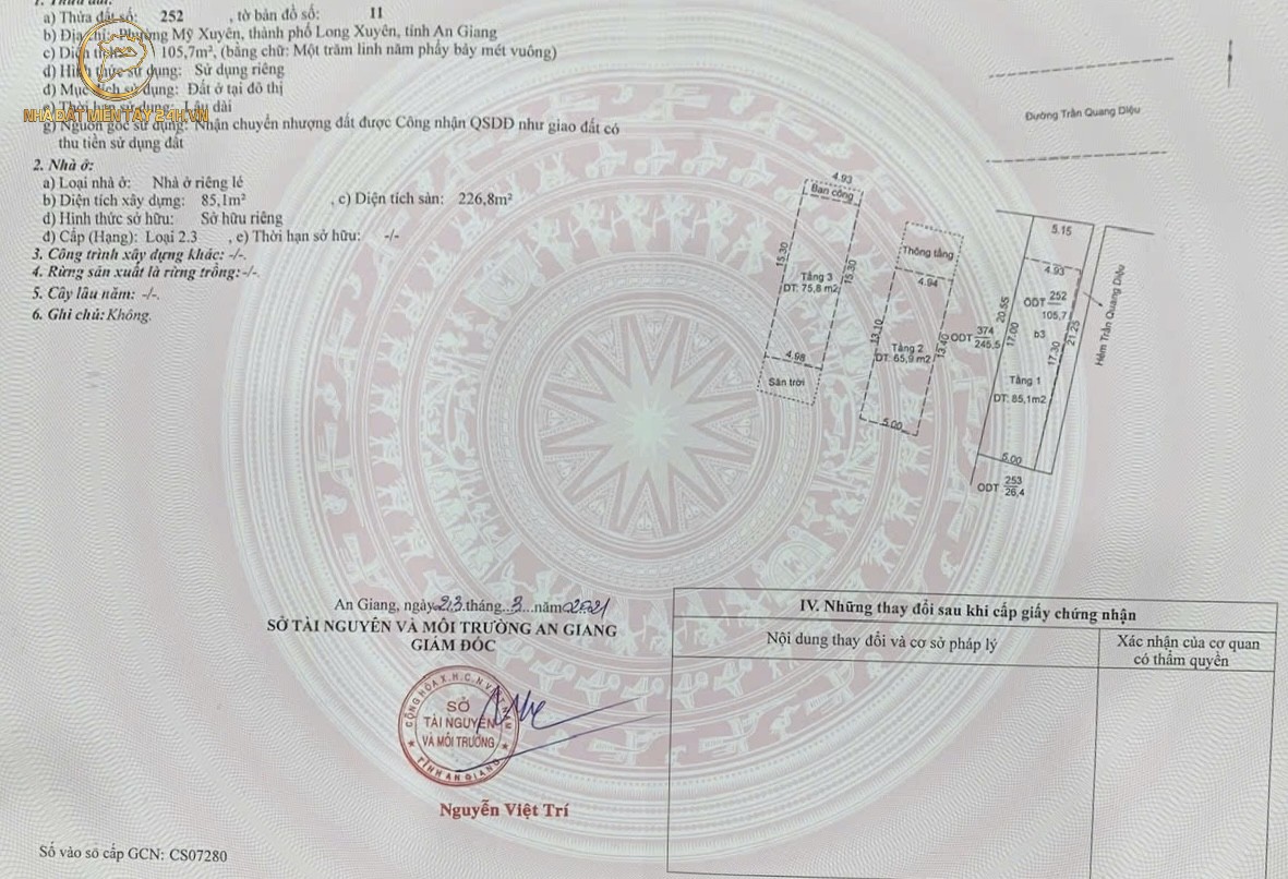 Mã số tin: 3532 Vị trí: An Giang Giá: 1 Tỷ 700 Triệu/ Tổng diện tích- 233