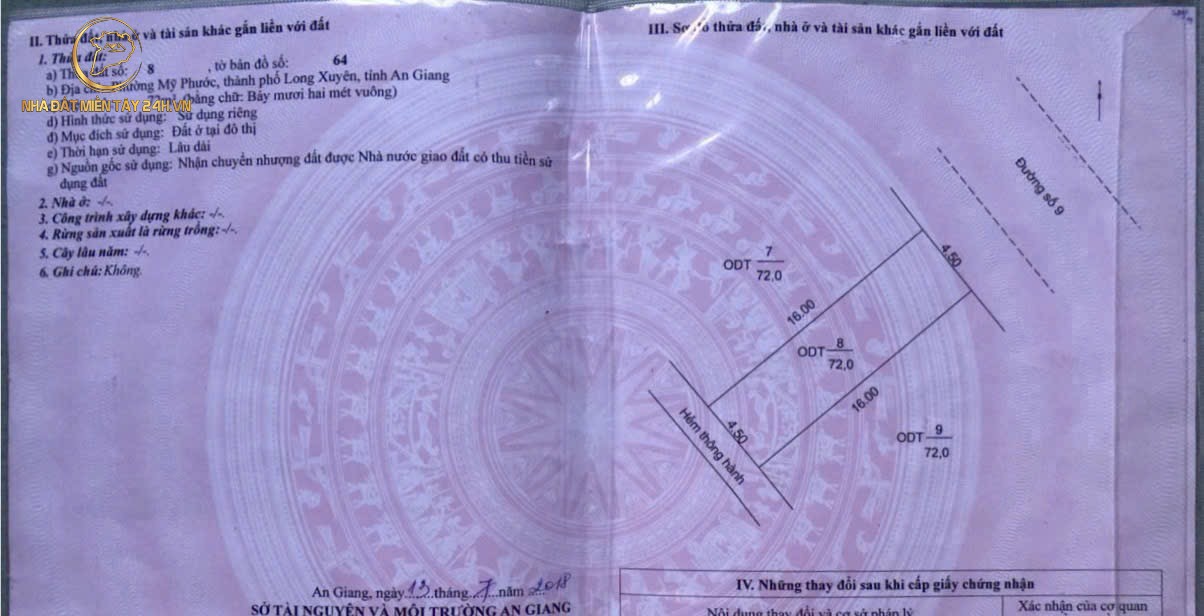 - Mục đích sử dụng: ODT - Đất ở tại đô thị
