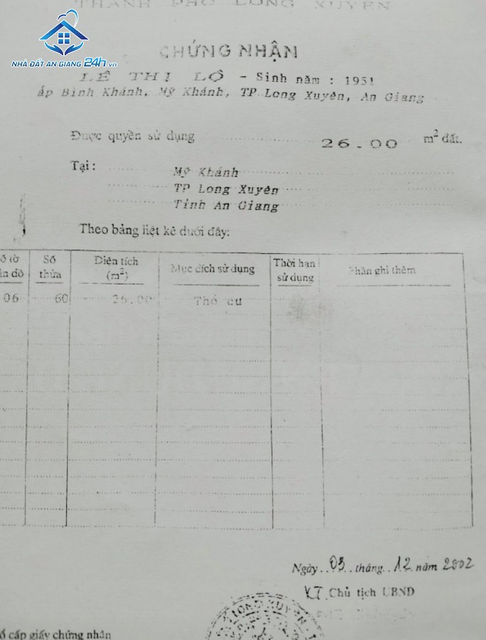 Mã số tin: 3547 Vị trí: An Giang Giá: 1 Tỷ XXX Triệu/ Tổng diện tích- 151