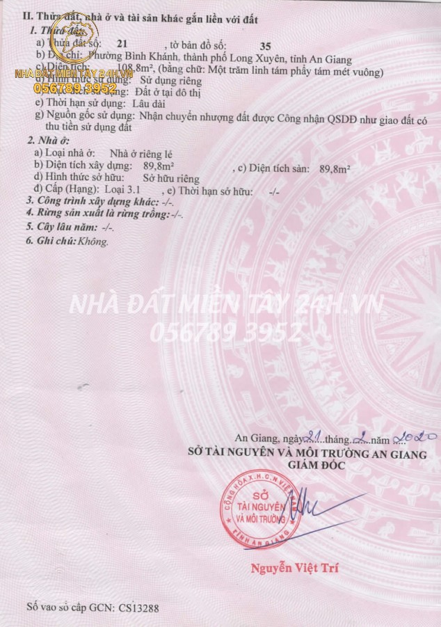 - Tên người bán: Nhà Đất Miền Tây 24h.vn