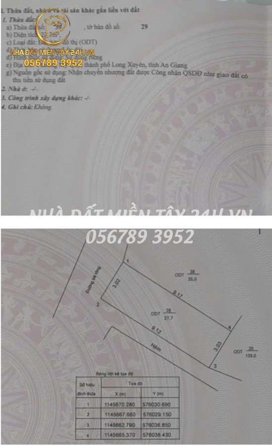 Mã số tin: 3547 Vị trí: An Giang Giá: 1 Tỷ XXX Triệu/ Tổng diện tích- 151