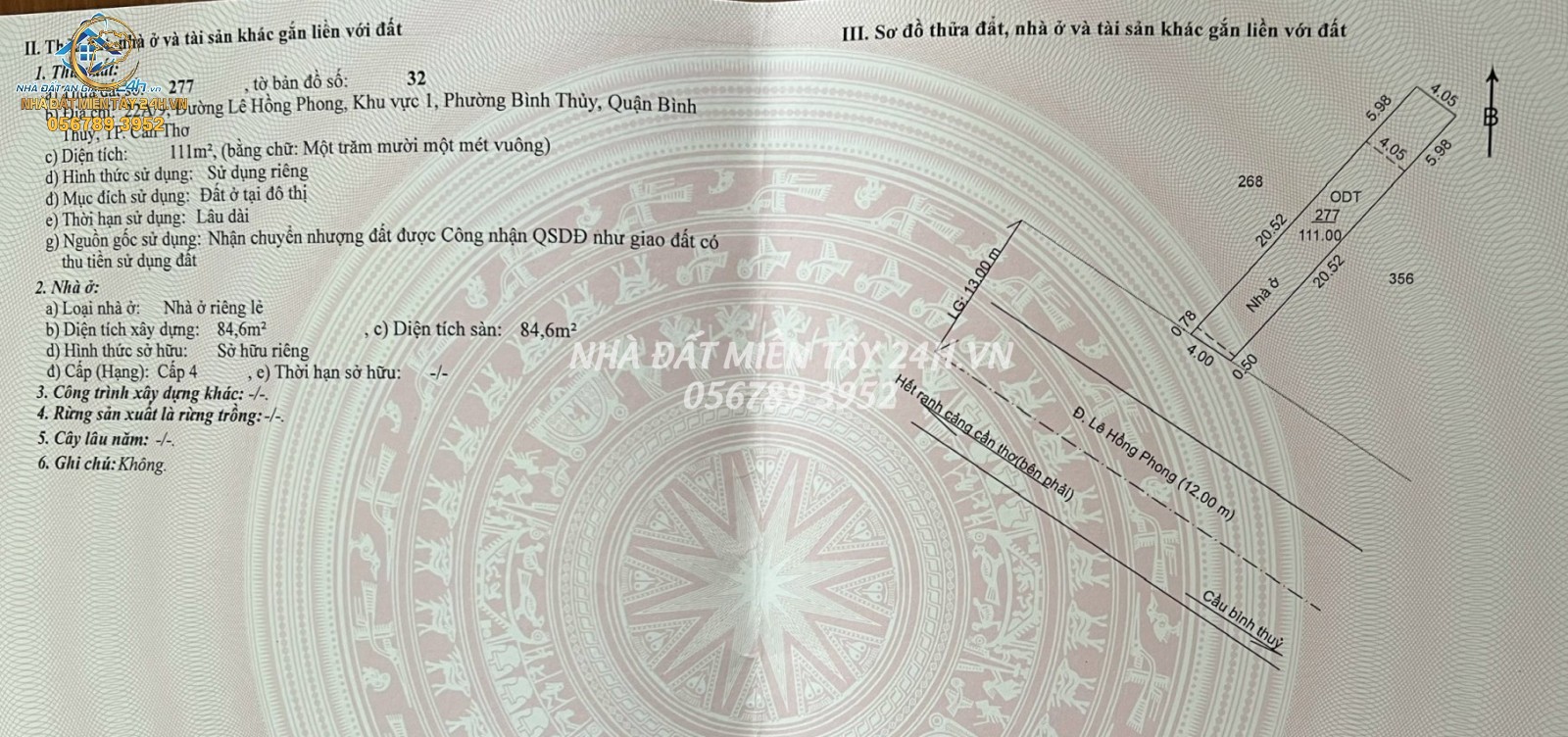 - Tên người bán: Nhà Đất Miền Tây 24h.vn