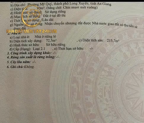 Mã số tin: 3550 Vị trí: An Giang Giá: 4 Tỷ XXX Triệu/ Tổng diện tích- 120