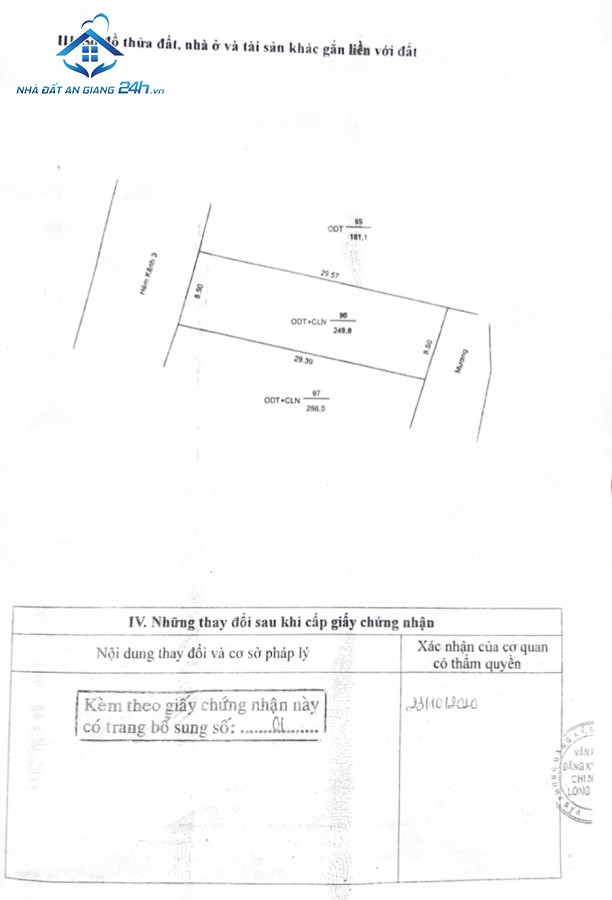 • Diện tích đất: 249,8m² (Ngang 8,5m x Dài 29,57m).
