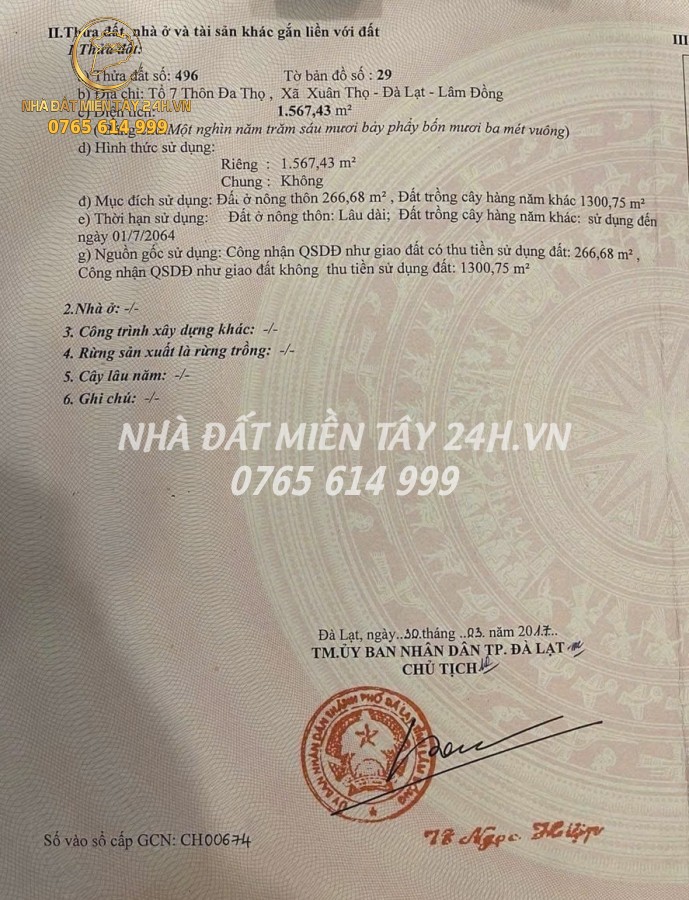 Mã số tin: 3546 Vị trí: Lâm Đồng Giá: CALL- 94