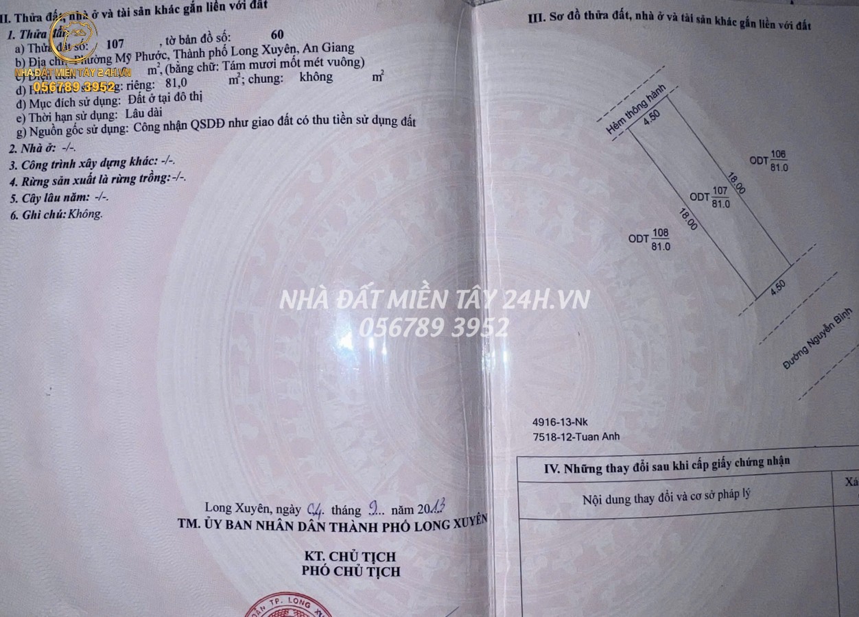🚀 CẶP NỀN ĐẸP – FULL THỔ CƯ – ĐƯỜNG NGUYỄN BÌNH - PHƯỜNG LONG XUYÊN (MS: 3411) 🚀