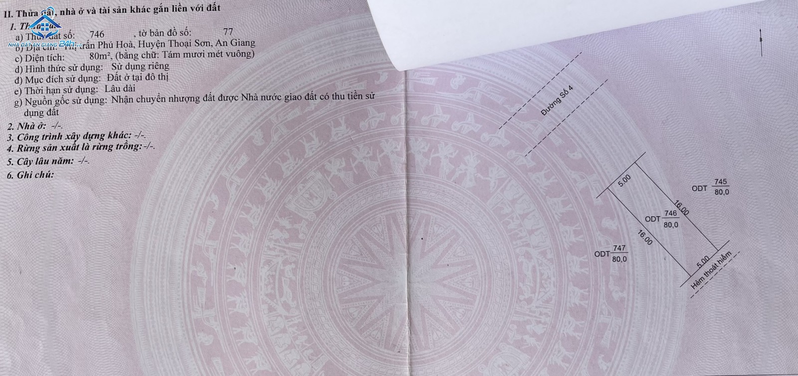 - Mục đích sử dụng: ODT - Đất ở tại đô thị