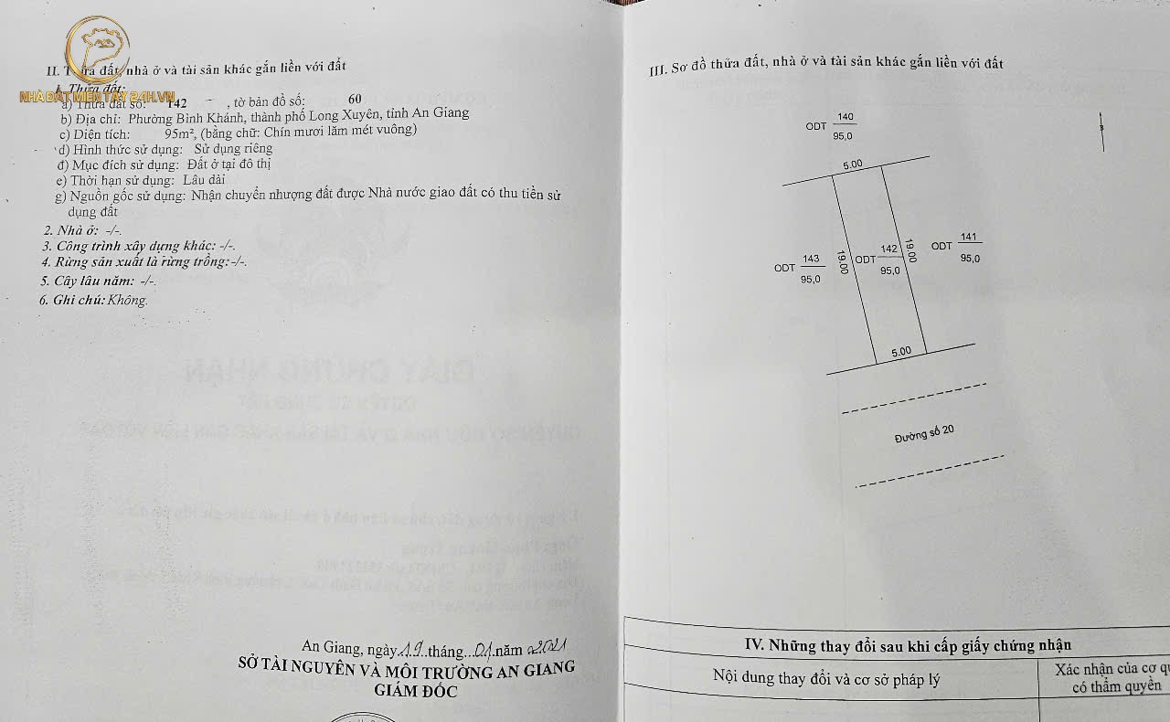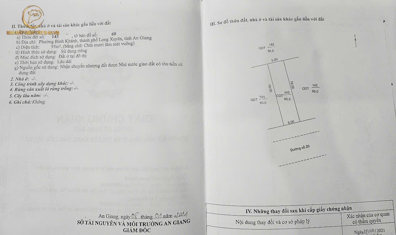 • Loại đất: ODT – Đất ở tại đô thị, xây dựng tự do.