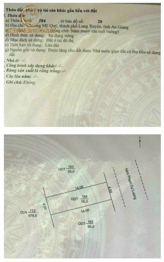 🔥 ĐẤT NỀN ĐƯỜNG NHÁNH PHẠM CỰ LƯỢNG – PHƯỜNG LONG XUYÊN – GIÁ CHỈ 1,X TỶ (MS: 3423) 🔥