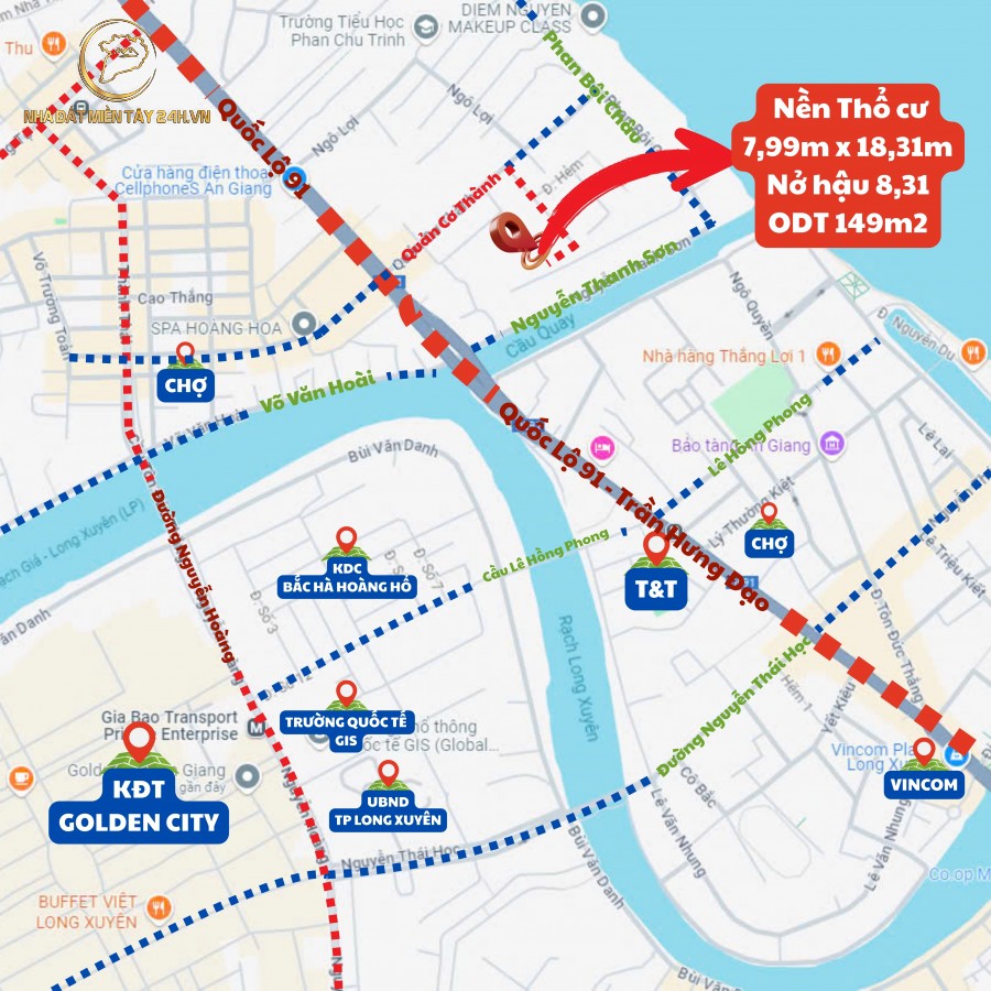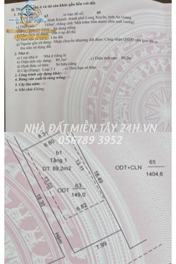 • Diện tích: 149m², ngang 7,99m (nở hậu 8,31m) x dài 18,49m
