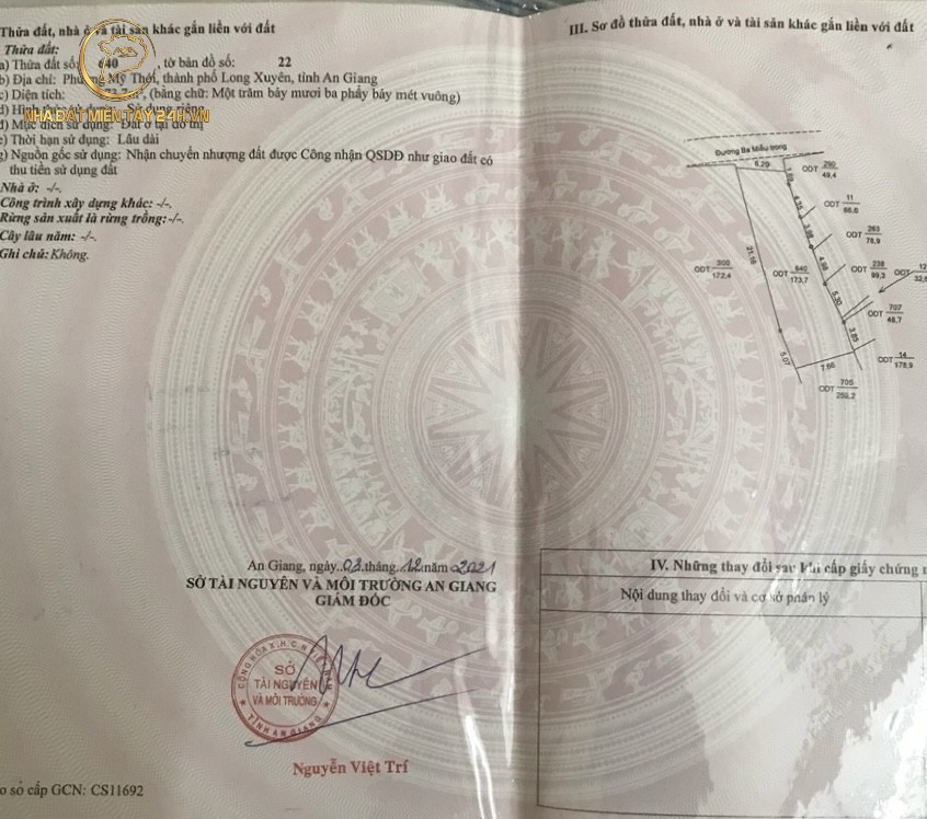 Mã số tin: 3549 Vị trí: An Giang Giá: 4 Tỷ XXX Triệu/ Tổng diện tích- 103