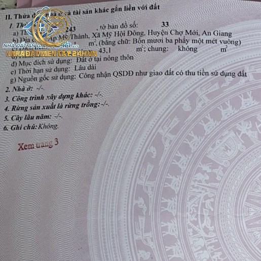 Mã số tin: 3545 Vị trí: An Giang Giá: 3 Tỷ XXX Triệu/ Tổng diện tích- 287
