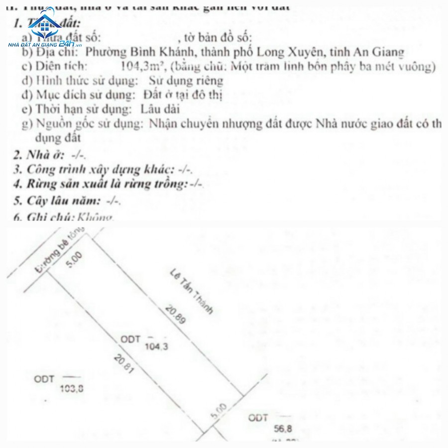Mã số tin: 3549 Vị trí: An Giang Giá: 4 Tỷ XXX Triệu/ Tổng diện tích- 103