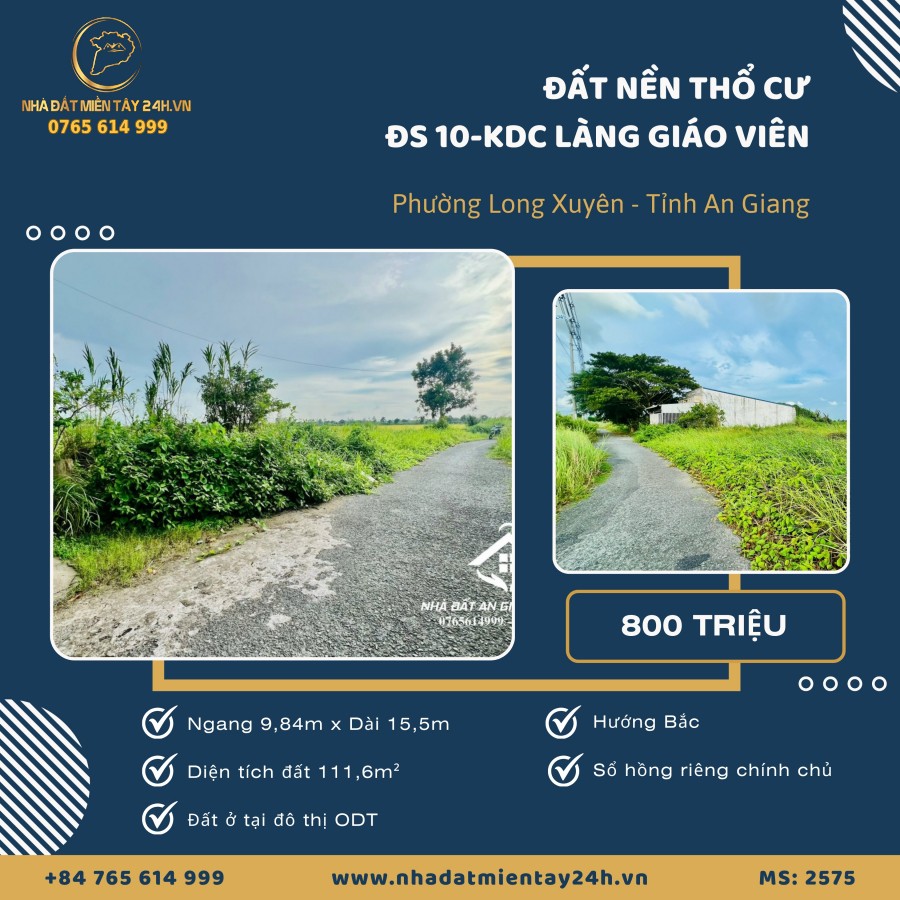 BÁN NỀN GÓC ĐƯỜNG SỐ 10, KDC LÀNG GIÁO VIÊN, PHƯỜNG LONG XUYÊN, AN GIANG (MS: 2575)