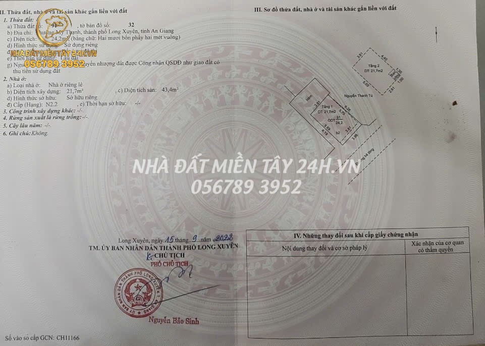 - Tên người bán: Nhà Đất Miền Tây 24h.vn