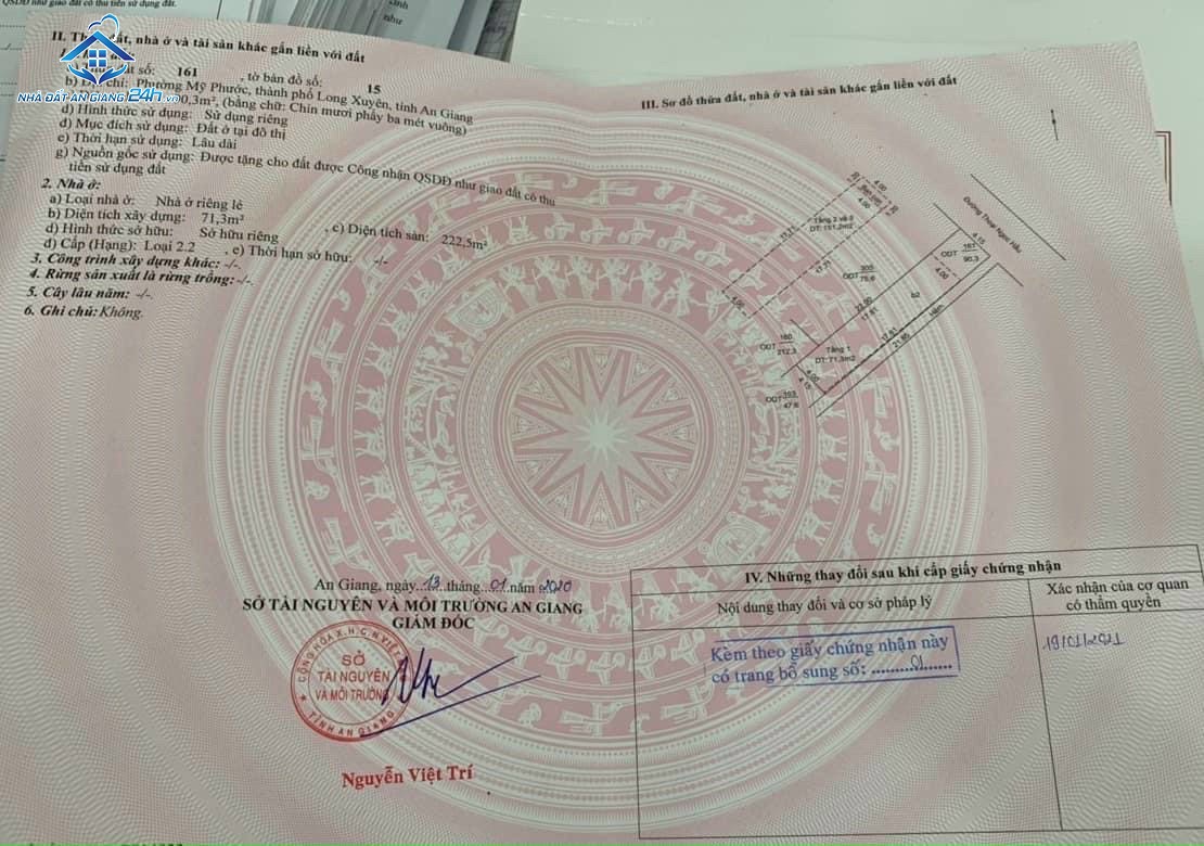 Mã số tin: 3537 Vị trí: An Giang Giá: 950 Triệu / Tổng diện tích- 256