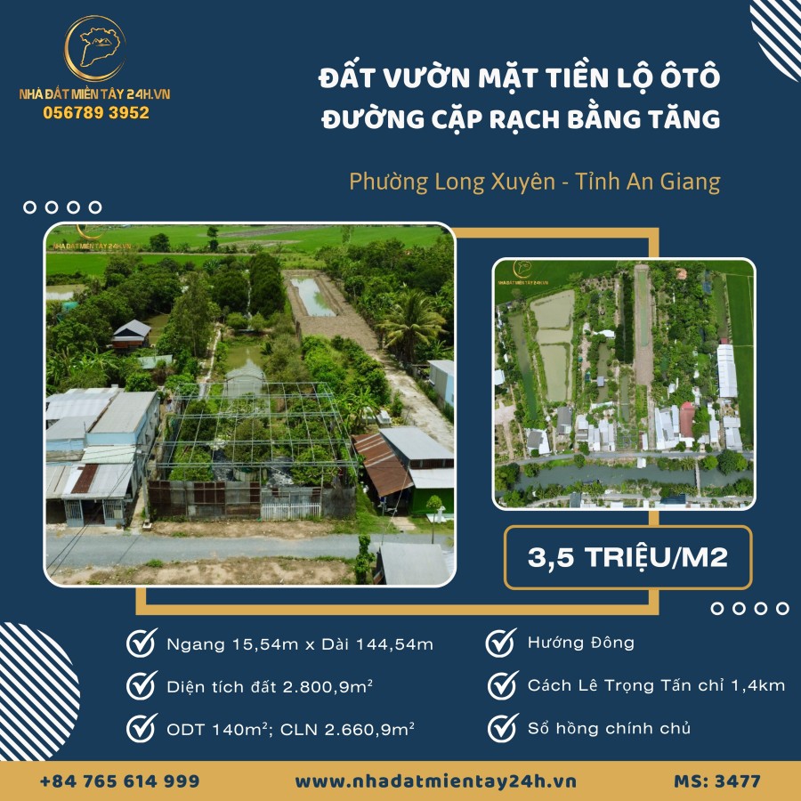 🌿 BÁN 2.800,9M2 ĐẤT VƯỜN MẶT TIỀN ĐƯỜNG RẠCH BẰNG TĂNG – PHƯỜNG LONG XUYÊN, AN GIANG (MS: 3477) 🌿
