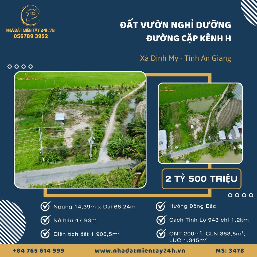 💥 BÁN LÔ ĐẤT VƯỜN NGHỈ DƯỠNG GẦN 2 CÔNG ĐẤT - ĐƯỜNG CẶP KÊNH H, XÃ ĐỊNH MỸ, AN GIANG (MS: 3478) 💥