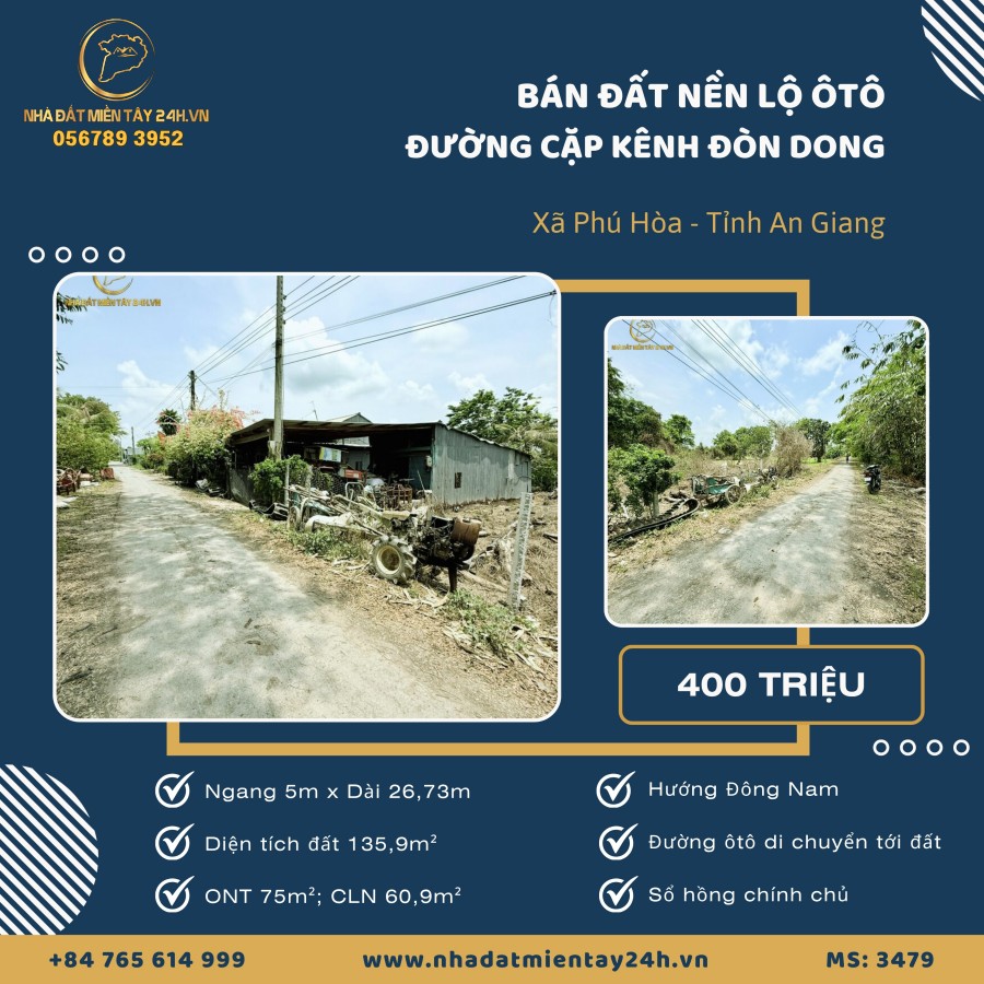 ✨ BÁN ĐẤT NỀN ĐƯỜNG CẶP KÊNH ĐÒN DONG, XÃ PHÚ HÒA - VIEW SÔNG CỰC MÁT (MS: 3479) 🏡🌿