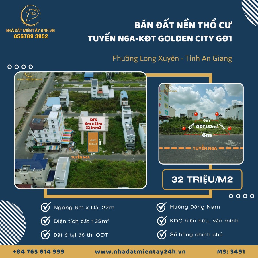 🌟 BÁN ĐẤT NỀN THỔ CƯ, TUYẾN N6A - GOLDEN CITY GĐ1, PHƯỜNG LONG XUYÊN, AN GIANG (MS: 3491) 🌟