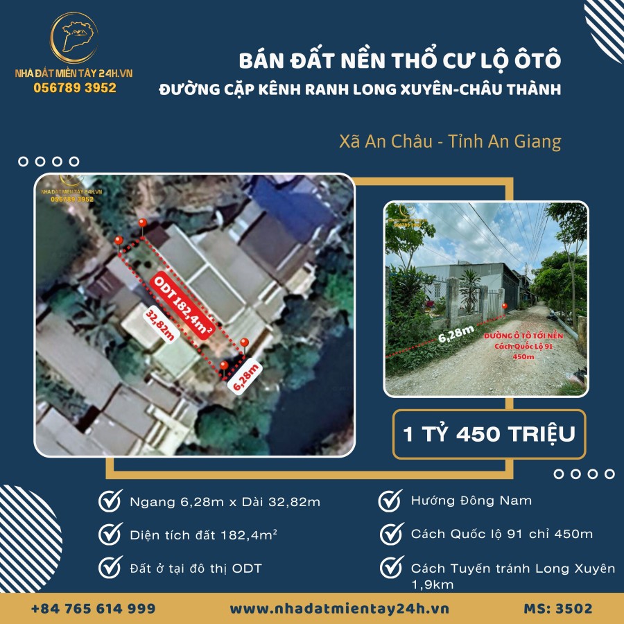 🌟 BÁN ĐẤT NỀN FULL THỔ CƯ – ĐƯỜNG Ô TÔ – XÃ AN CHÂU, AN GIANG (MS: 3502) 🌟