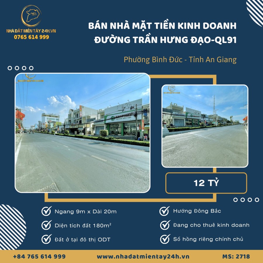 🏠 NHÀ MẶT TIỀN ĐƯỜNG TRẦN HƯNG ĐẠO (QUỐC LỘ 91), PHƯỜNG BÌNH ĐỨC, AN GIANG (MS: 2718) 🏠