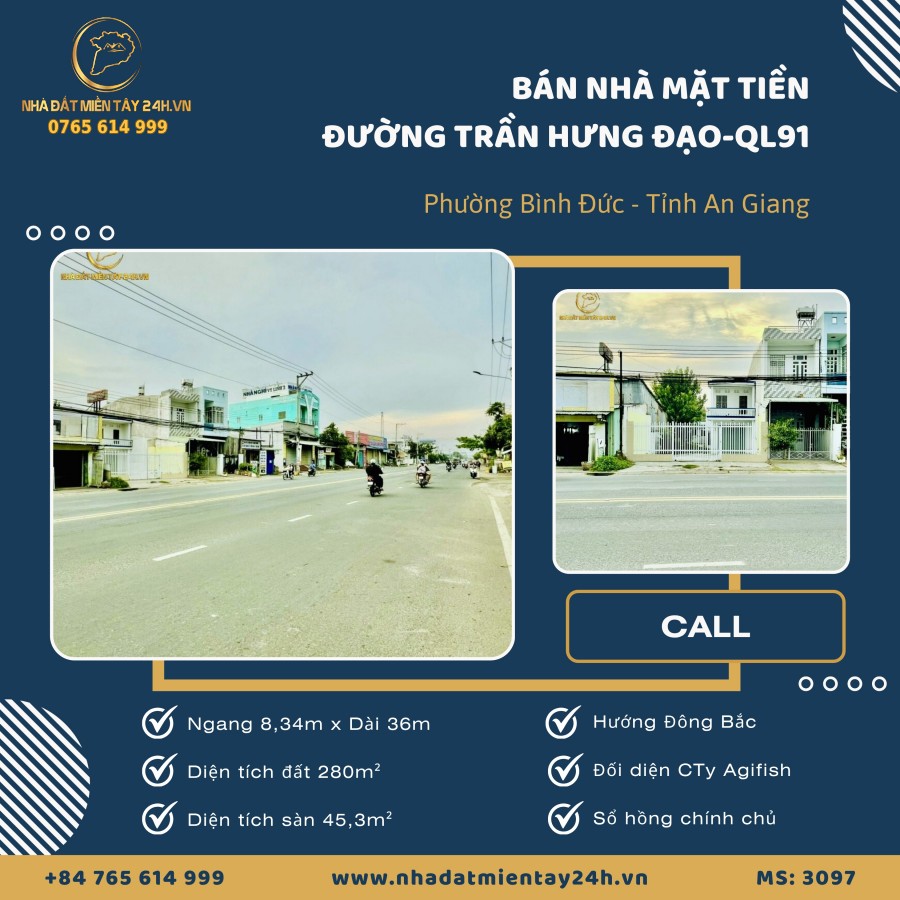 🏠 BÁN NHÀ MẶT TIỀN TRẦN HƯNG ĐẠO – QUỐC LỘ 91, PHƯỜNG BÌNH ĐỨC, AN GIANG (MS: 3097) 🏠